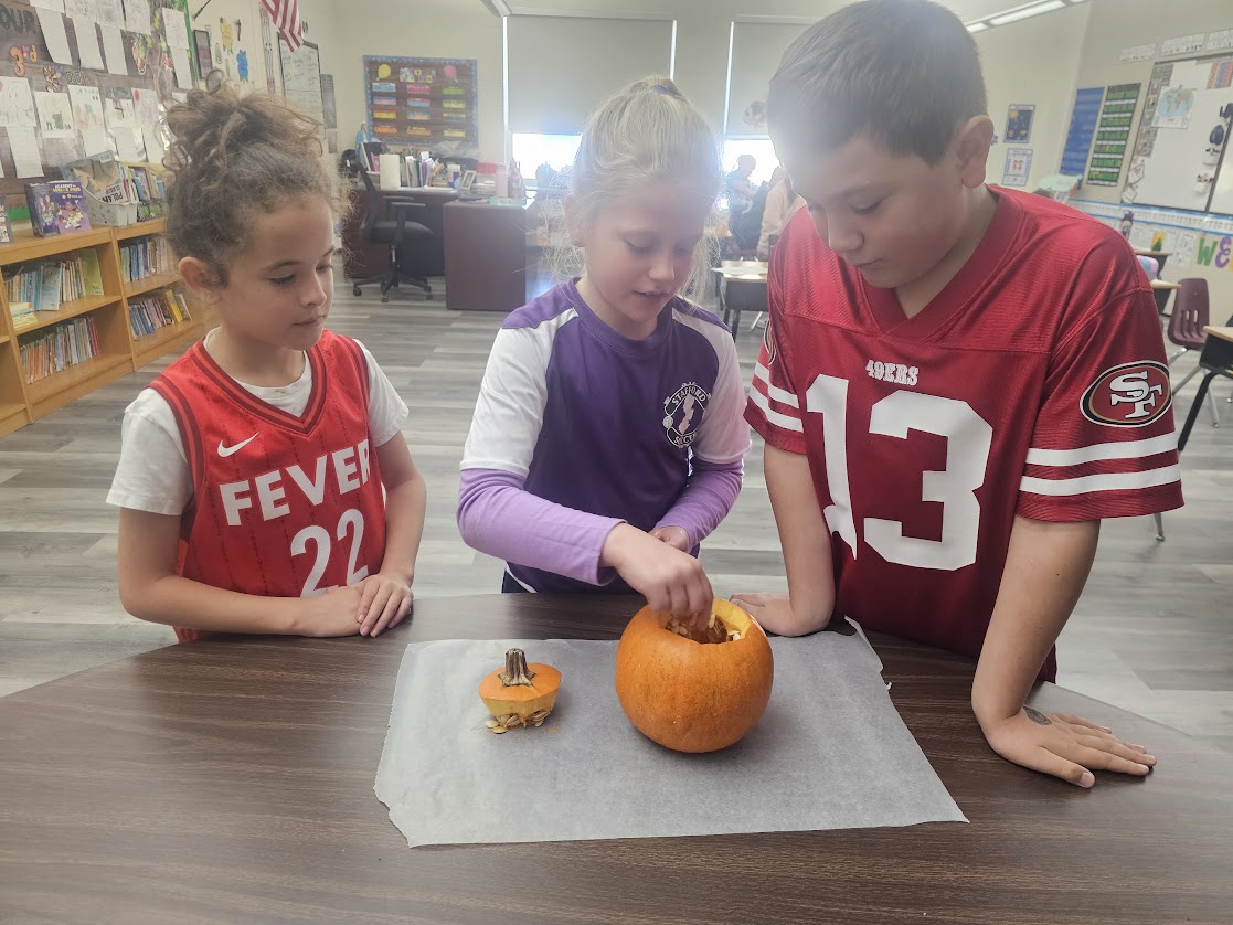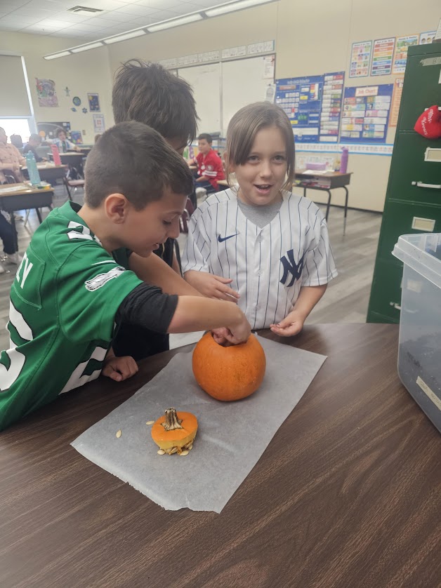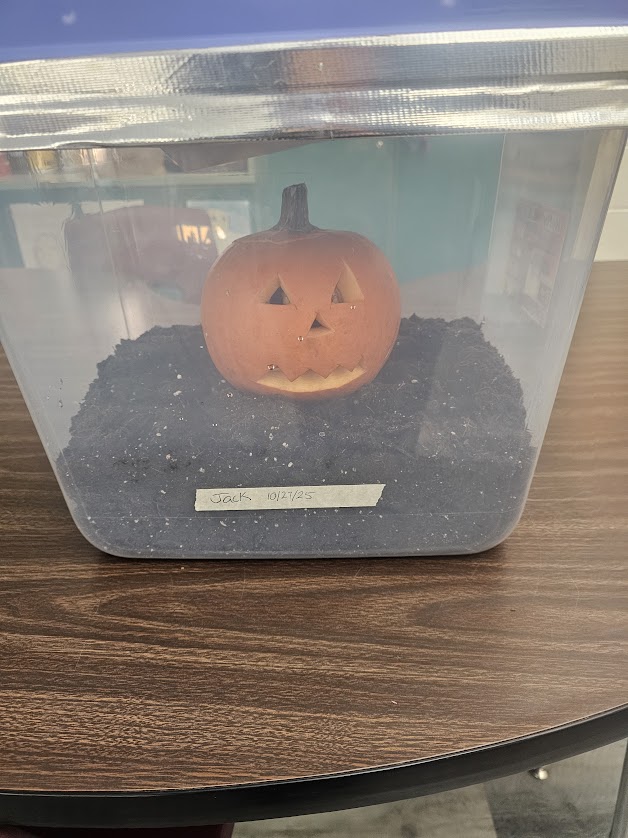 Meet Jack! Our class pumpkin that we will observe over the rest of the year to see how he changes. Today we made observations using our 5 senses and we made predictions for how he will change!