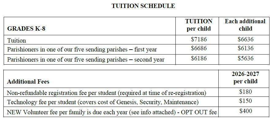 Welcome to our K-8 Tuition and Information Page. New Families are welcome to download the application and apply. Instructions on how to apply and what is required can be found in the packet. Interviews may be requested for students in grade 3-8.