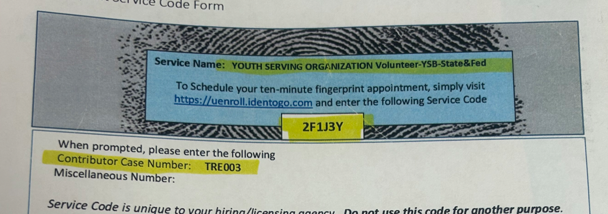 The Contributor case # that should be used by all is TRE003. This is required for all IdentoGo appointments when scheduling:
